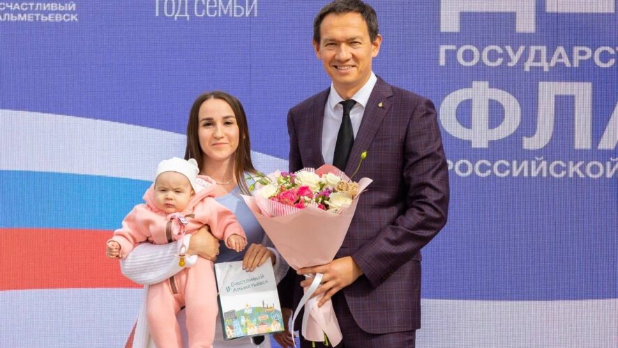 В Альметьевске в День государственного флага России в торжественной обстановке поздравили с рождением малышей местных жительниц, чьи мужья находятся в зоне спецоперации.