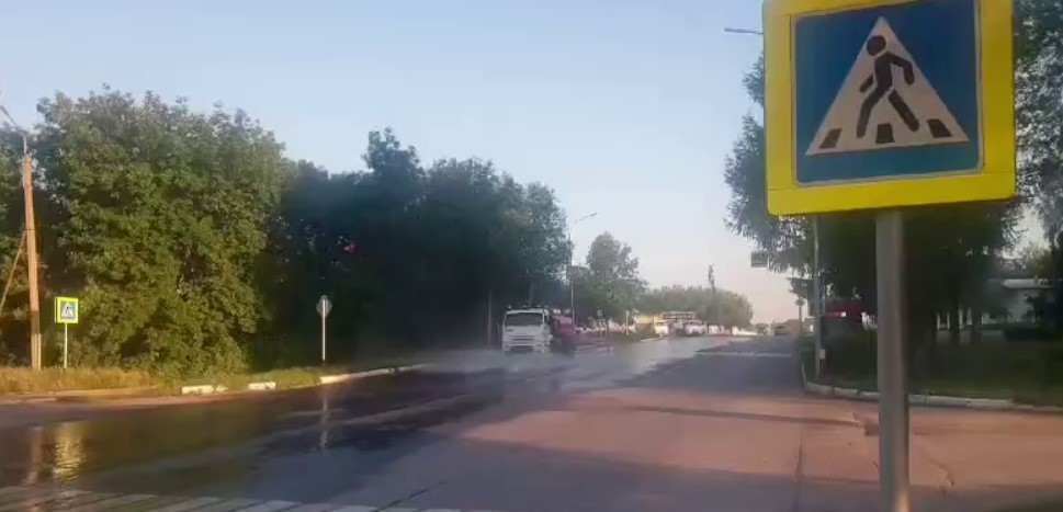 Поливать дороги начали в Бугульме из-за жары. Об этом сообщили в мэрии города.
