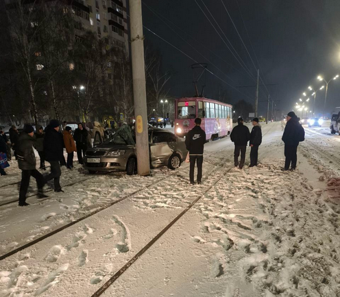 В Челнах легковушка впечаталась в столб и парализовала движение трамваев на ГЭСе