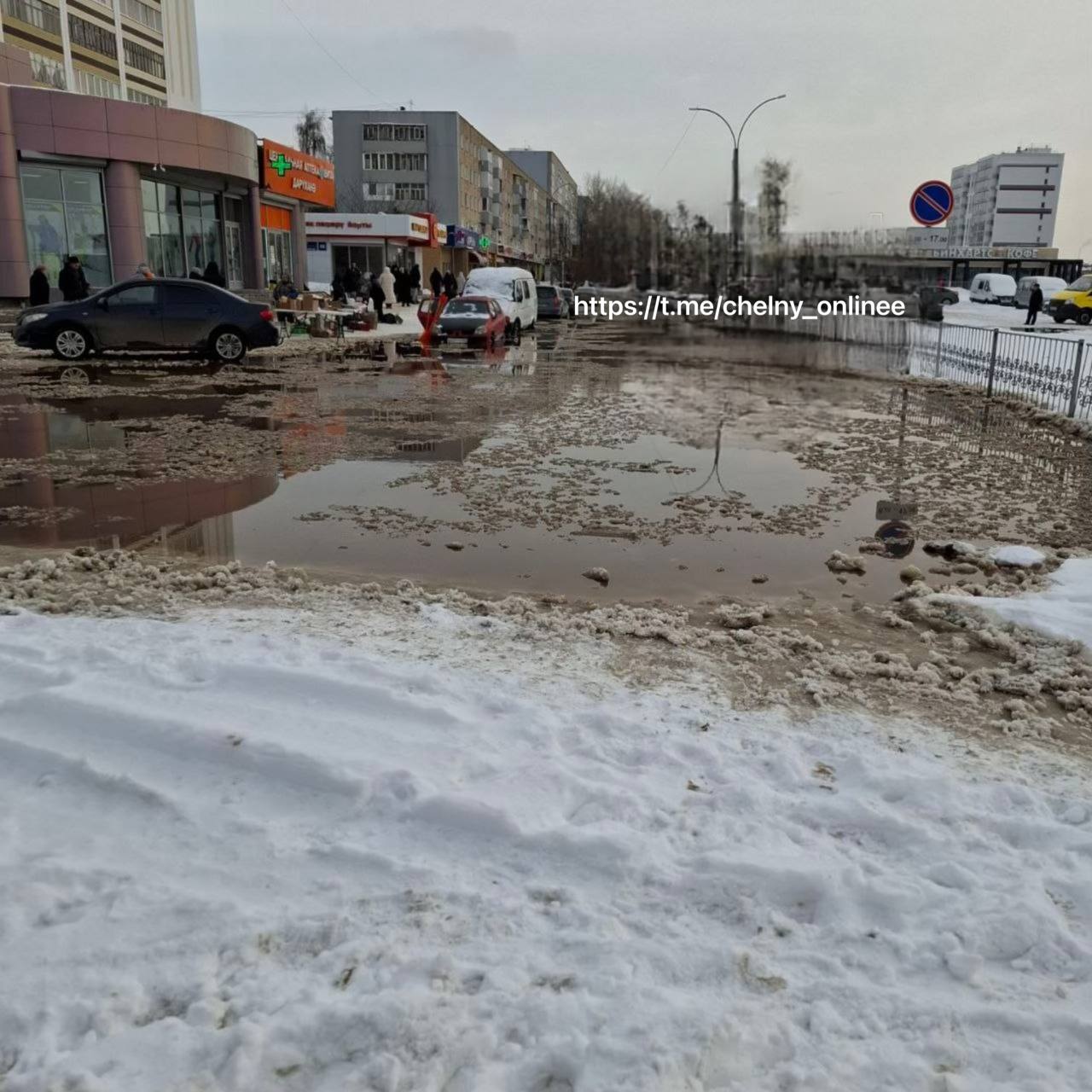 В Набережных Челнах за остановкой «Микрорайон Бумажников» произошел потоп. Очевидцы поделились в соцсетях роликом с места происшествия.