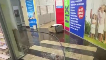 Судя по видео, вода залила пол во многих помещениях.. На входе у одного из павильонов лежало промокшее полотенце. Владельцы магазинов избавлялись от последствий, как могли — в ход пошли совки, ведра, бочки.