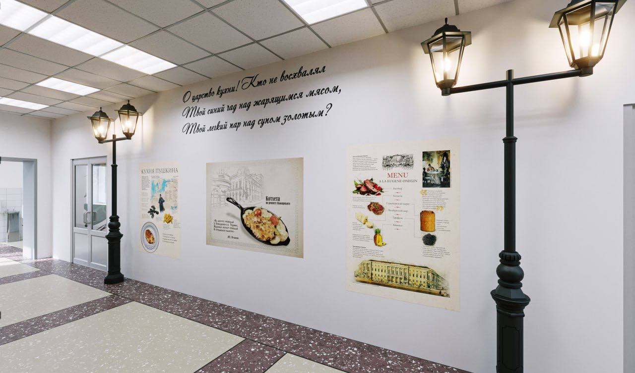 В лицее №78 имени Пушкина появится кухня поэта. На стенах изобразят стихи, а перед входом установят фонари.