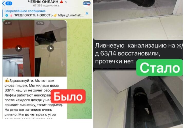 Ситуацию прокомментировала пресс-секретарь мэра Челнов Римма Мухаметзянова. По ее словам, в таких ситуациях нужно первую очередь обращаться к коммунальным службам. В здании уже восстановили ливневки.