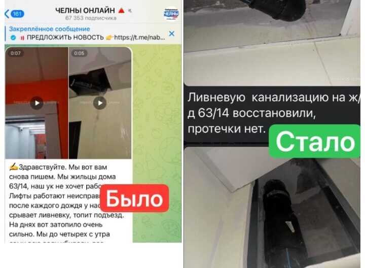Ситуацию прокомментировала пресс-секретарь мэра Челнов Римма Мухаметзянова. По ее словам, в таких ситуациях нужно первую очередь обращаться к коммунальным службам. В здании уже восстановили ливневки.