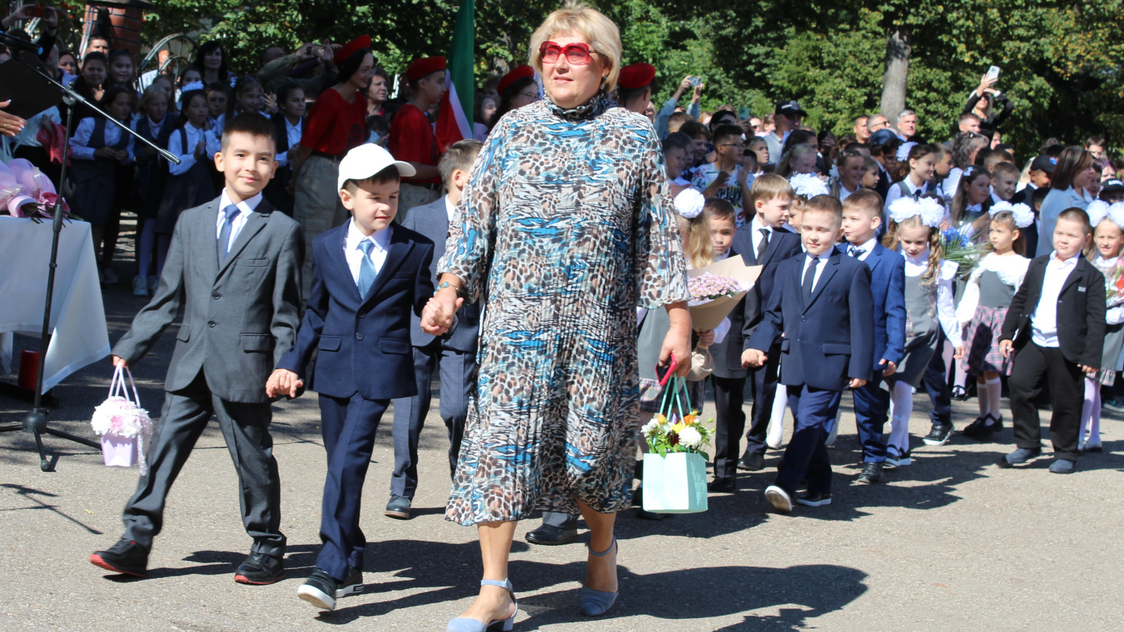 В первый день нового учебного года в каждой школе присутствовали почетные жители города. Там же находились местные чиновники. Юбилейная линейка прошла в средней школе №5. Она отмечает 70-летие. Поздравить детей пришли заместитель министра Цифрового развития Татарстана Булат Габдрахманов, городской прокурор Алексей Панишев, советник главы Лениногорского района Петр Гринь, начальник управления образования Вагиз Санатулин, ветераны труда, родители школьников и выпускники.