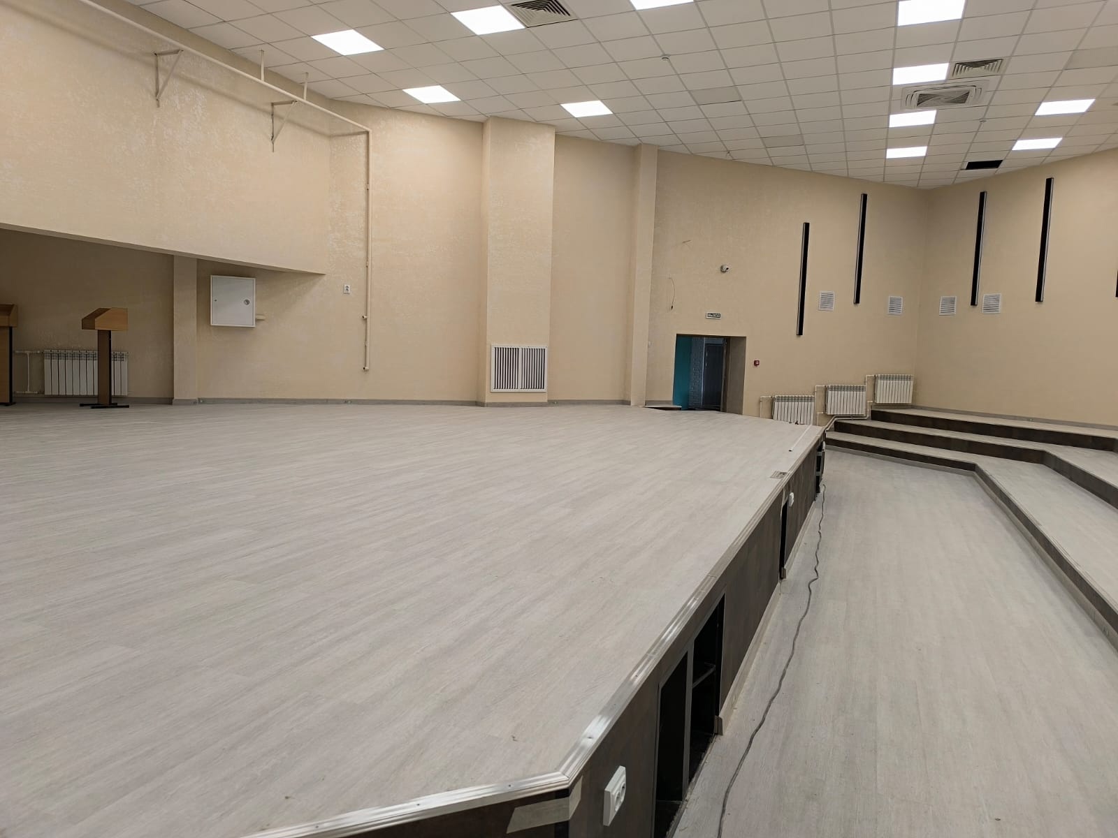 В центре установили новые двери и окна, расширили холл. Для родителей, сопровождающих детей, обустроили пристрой. Кроме того, теперь у здания новый фасад. Актовый зал стал современным, светлым, комфортным.