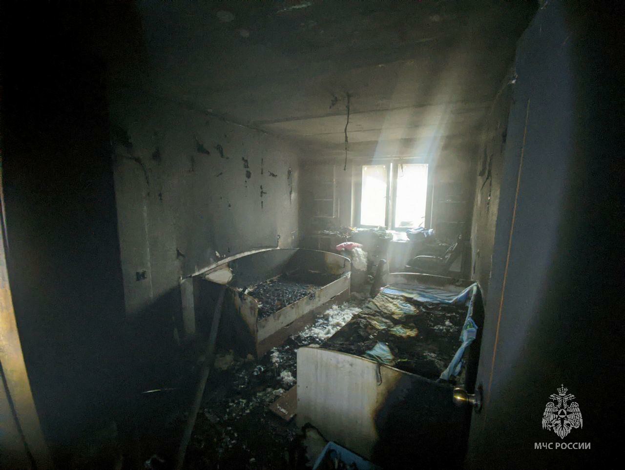 Огонь занял площадь в 15 кв.м. Подоспевшие на место спасатели заметили, что возгорание началось в «двушке» на седьмом этаже. Из горевшей квартиры до прибытия пожарных самостоятельно вышли 39-летний мужчина и сын. Главу семьи с подозрением на отравление продуктами горения направили в больницу скорой медпомощи. Девятилетнему школьнику госпитализация не понадобилась.