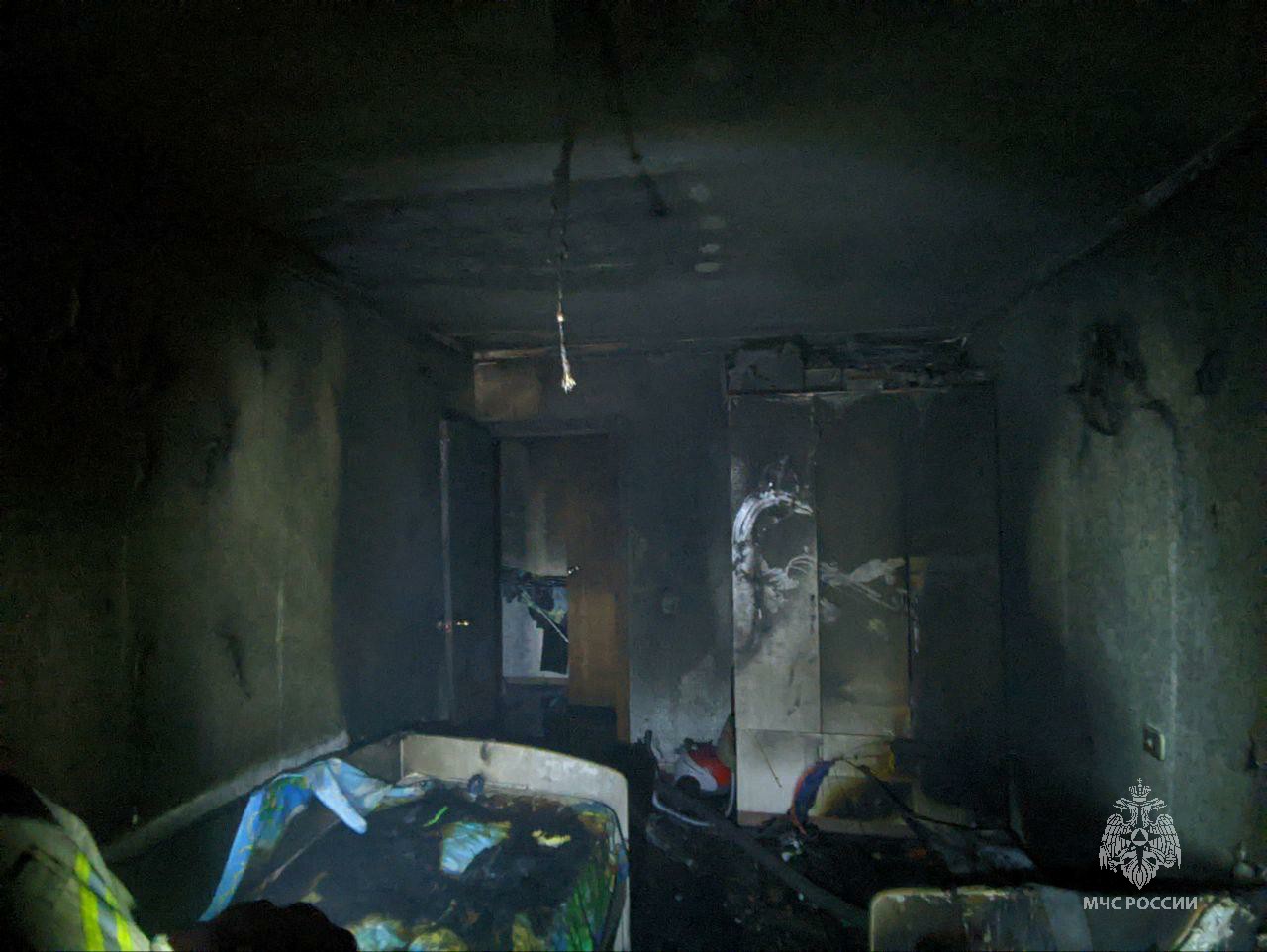 Огонь занял площадь в 15 кв.м. Подоспевшие на место спасатели заметили, что возгорание началось в «двушке» на седьмом этаже. Из горевшей квартиры до прибытия пожарных самостоятельно вышли 39-летний мужчина и сын. Главу семьи с подозрением на отравление продуктами горения направили в больницу скорой медпомощи. Девятилетнему школьнику госпитализация не понадобилась.