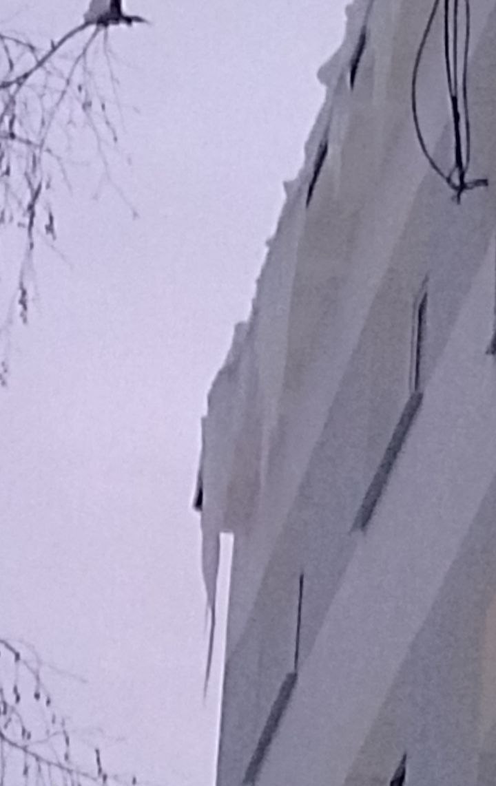 «Жители каждый день рискуют жизнью, проходя мимо этих длиннющих глыб. Ведь не знаешь, когда такая прилетит тебе на голову. УК при этом убирать сосульки не торопится. Ждут, когда кого-то убьёт?» — написал в местном Телеграм-канале автор жалобы.
