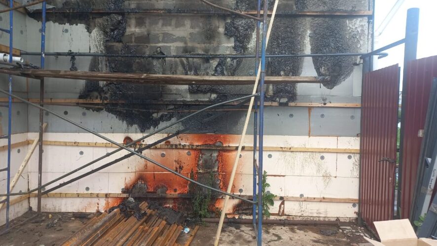 Огонь повредил внутреннюю деревянную обшивку стены и потолочного перекрытия строения.