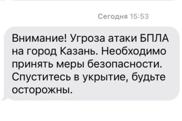 Продлилась несколько минут: угроза атаки на Елабугу, Челны и Нижнекамск отменена 17:42 | 02-01-2026 Общество Специалисты объявили об отмене угрозы атаки БПЛА на Елабугу, Набережные Челны и Нижнекамск. Судя по данным от Единой госсистемы предупреждения и ликвидации чрезвычайных ситуаций, продлилась она всего несколько минут. Напомним, что до этого об угрозе атаки БПЛА также предупреждали жителей... «Спуститесь в укрытие»: объявлена угроза атаки БПЛА на Елабугу, Челны и Нижнекамск 17:28 | 02-01-2026 Происшествия Объявлена угроза атаки БПЛА на Елабугу, Набережные Челны и Нижнекамск. Информацию об этом передает Единая госсистема предупреждения и ликвидации чрезвычайных ситуаций. Жителей вышеупомянутых городов специалисты просят принять меры безопасности, спуститься в укрытие и не подходить к окнам. Также татарстанцев призвали... Угроза атаки БПЛА на Казань и Зеленодольск отменена 16:53 | 02-01-2026 Общество Угроза атаки БПЛА на Казань и Зеленодольск отменена. Информацию об этом передает Единая госсистема предупреждения и ликвидации чрезвычайных ситуаций. Напомним, что до этого в Зеленодольском районе силы ПВО уничтожили беспилотник. Все силы и средства были в полной готовности. Ситуация находилась... Угроза не миновала: небо над Нижнекамском закрыли вслед за Казанью 16:20 | 02-01-2026 Общество В аэропорту Нижнекамска («Бегишево») ввели временные ограничения на прием и выпуск воздушных судов. Об этом сообщили в Росавиации. «Ограничения необходимы для обеспечения безопасности полетов», — подчеркнули специалисты. Напомним, что до этого аналогичные ограничения ввели в воздушной гавани Казани. Там задержаны... Жителей Казани просят спуститься в укрытия — город под ударом БПЛА 15:57 | 02-01-2026 Общество К жителям Казани обратились с просьбой спуститься в укрытия на фоне объявленной угрозы атаки БПЛА. Соответствующие уведомления начали поступать на телефоны горожан. «Внимание! Угроза атаки БПЛА на город Казань. Необходимо принять меры безопасности. Спуститесь в укрытие, будьте осторожны», — сказано... «Ситуация под контролем»: силы ПВО сбили беспилотник в Зеленодольском районе 15:26 | 02-01-2026 Происшествия В Зеленодольском районе силы ПВО уничтожили беспилотник. Об этом в своем телеграм-канале сообщил глава муниципалитета Михаил Афанасьев. «В Зеленодольском районе сбит БПЛА. Все силы и средства находятся в полной готовности. Ситуация под контролем», — поделился он. Ранее KazanFirst писал, что... Ряд авиарейсов задерживается в аэропорту Казани из-за угрозы атаки БПЛА 15:22 | 02-01-2026 Общество В аэропорту Казани задержаны на вылет 10 рейсов, так как воздушная гавань не принимает и не отправляет самолеты из-за угрозы атаки БПЛА. Об этом свидетельствуют данные с онлайн‑табло. Среди рейсов, задержанных на вылет, те, которым предстоит направиться в Ханты‑Мансийск, Минеральные... В Авиастроительном районе Казани на фоне угрозы атаки БПЛА прозвучали сирены 15:04 | 02-01-2026 Общество Сирены прозвучали в Авиастроительном районе Казани. Соответствующие ролики в соцсетях публикуют очевидцы. Сирены зазвучали на фоне объявленной 2 января угрозы атаки БПЛА. Жителям Казани и Зеленодольска специалисты МЧС посоветовали спуститься в подвалы и укрытия, не подходить к окнам, а также... Силы ПВО уничтожили за ночь над регионами России 64 беспилотника 09:12 | 02-01-2026 Происшествия Российские дежурные средств