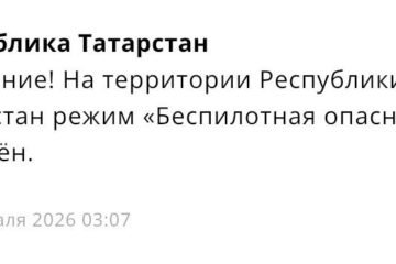 Внимание, спуститесь в укрытия: в Альметьевске угроза атаки вражеских БПЛА 09:01 | 24-02-2026 Происшествия Угроза атаки БПЛА на Альметьевск. Об этом сообщает официальное приложение МЧС России. Необходимо принять меры безопасности. Жителям сообщают, что нужно спуститься в укрытие, не подходить к окнам, быть внимательными и осторожными. Для международного аэропорта в Нижнекамске введены временные ограничения на... Минобороны РФ: Над Татарстаном уничтожены два БПЛА 07:41 | 11-02-2026 Происшествия Министерство обороны Российской Федерации сообщило о пресечении попытки атаки БПЛА на территории Татарстана. По данным ведомства, дежурными средствами ПВО над республикой были обнаружены и уничтожены два украинских БПЛА. Всего за минувшее время силы противовоздушной обороны перехватили и уничтожили 108 беспилотников...
