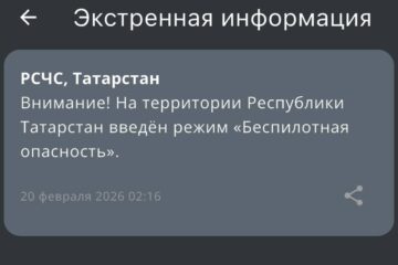 Угроза республике — в Татарстане вновь введен режим беспилотной опасности 05:53 | 20-02-2026 Происшествия Режим беспилотной опасности вновь введен в Татарстане. Сообщение от МЧС России поступило в третьем часу ночи. Одновременно с введением режима в РТ заметно замедлился мобильный интернете. Появились проблемы с входом в онлайн-приложения, вызовом такси, а также наблюдаются сбои в работе... Пугающая тенденция: Татарстан снова под ударом, вражеские дроны атакуют – итоги вторника 18:52 | 17-02-2026 Общество Вот уже который раз враг атакует Республику Татарстана. Налеты происходят, как правило, ночью. Вторник, 17 февраля, не стал исключением. Около двух часов ночи в республике был объявлен режим беспилотной опасности. Не прошло и часа – на прием и выпуск судов... Дроны атакуют Татарстан — в двух городах республики объявлена угроза атаки БПЛА 04:57 | 17-02-2026 Происшествия Угроза атаки беспилотными летающими средствами объявлена сразу в двух городах Татарстана — в Набережных Челнах и Альметьевске. Сообщение об этом поступило около пяти утра от МЧС России. Жителям и гостям республики настоятельно советуют принять все меры безопасности — спуститься в... Казань под ударом: в столице объявлена угроза атаки БПЛА 05:25 | 11-02-2026 Происшествия Угроза атаки БПЛА объявлена в Казани. Сообщение от МЧС России поступило в 05.21. Жителям и гостям столицы настоятельно советуют принять все необходимые меры безопасности. В первую очередь, по возможности спуститься в укрытие (подвал или паркинг). Также стоит держаться подальше от... Беспилотную опасность и угрозу атаки БПЛА сняли в Татарстане 10:14 | 06-01-2026 Общество В Татарстане отменили беспилотную опасность и угрозу атаки БПЛА на города Нижнекамск, Альметьевск и Елабуга. Об этом сообщает РСЧС. Режим ввели сегодня примерно в 11 часов вечера. Через три часа в Альметьевске, Нижнекамске и Елабуге объявили угрозу атаки БПЛА. Жителей... Спуститесь в укрытие: угроза атаки БПЛА объявлена сразу в трех городах Татарстана 07:42 | 06-01-2026 Происшествия Угроза атаки дронов объявлена сразу в трех городах Татарстана — Нижнекамске, Альметьевске и Елабуге. Сообщение об этом поступило от МЧС России. Кроме того, на прием и выпуск самолетов закрыты обо республиканских аэропорта — в Казани и Нижнекамске. Жителей и гостей... Ночная атака на Татарстан — в республике почти четыре часа был режим беспилотной опасности 06:00 | 17-11-2025 Происшествия Ночью в Татарстане вновь был введен режим беспилотной опасности. Сообщение от МЧС России поступило около двух часов ночи. Уже привычно появились проблемы с мобильным интернетом, перестали работать основные мессенджеры, наблюдались с ложности с вызовом такси. В 5:43 режим беспилотной опасности отменили.... Атака с неба — в Татарстане введен режим беспилотной опасности 06:04 | 12-11-2025 Происшествия Режим беспилотной опасности вновь объявлен на территории Республики Татарстан. Сообщение от МЧС России поступило в пятом часу утра. Одновременно с введенным режимом в Казани и других городах РТ появились проблемы с мобильным интернетом, не грузятся основные приложения, практически невозможно вызвать... МЧС напомнило, как татарстанцам вести себя при угрозе атаки БПЛА 07:44 | 15-10-2025 Общество ГУ МЧС России по РТ опубликовало инструкцию о правилах поведения во время атаки БПЛА. Памятка размещена в официальном телеграм-канале ведомства