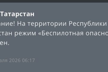 Режим беспилотной опасности отменен в Татарстане 07:01 | 13-02-2026 Общество Сегодня утром был отменен режим беспилотной опасности на территории Республики Татарстан. Об этом сообщает РСЧС. В Татарстане уже четыре часа действует беспилотная опасность 08:27 | 18-01-2026 Общество В Татарстане уже несколько часов действует режим беспилотной опасности. Она была объявлена сегодня в 4.40 утра. Как обычно, на период действия режима в республике местами ограничена мобильная связь и мобильный интернет. Татарстан под ударом — в республике закрыты аэропорты и введен режим беспилотной опасности 06:47 | 04-11-2025 Происшествия С четырех утра в Татарстане действует режим беспилотной опасности. Сообщение поступило жителям и гостям республики от МЧС России. Почти сразу на прием и выпуск воздушных судов был закрыт аэропорт Казани. Спустя полчаса полеты ограничили и над Нижнекамском — воздушная гавань... Более полутора тысяч жалоб поступило от татарстанцев на мобильную связь 10:27 | 09-08-2025 Общество С полуночи жители Татарстана начали массово жаловаться на проблемы с мобильной связью и интернетом. За несколько часов поступило около 1,5 тысяч обращений от абонентов. Причиной сбоев стал введенный режим «Беспилотной опасности», который предусматривает ограничения работы сетей связи. Многие пользователи сообщают... Аэропорты Казани и Нижнекамска временно закрыли из-за угрозы безопасности 09:45 | 15-06-2025 Происшествия Пассажирам рекомендуется следить за информацией о своих рейсах и обращаться к авиакомпаниям за уточнениями. Аэропорты Ижевска, Казани и Нижнекамска (Бегишево) прекратили прием и отправку всех рейсов по соображениям безопасности полетов. Ограничения введены временно, пишет Росавиация. В воздушных гаванях сейчас не... МЧС объявило отбой опасности атаки БПЛА в Татарстане 09:21 | 22-02-2025 Общество Ситуация в настоящее время нормализовалась, угроза миновала. В районе 9:09 по Московскому времени МЧС сообщило, что угроза воздушной атаки БПЛА в Татарстане снята. Ранее мы писали, что в 6:37 утра того же дня, ведомство объявило об угрозе атаки БПЛА в... Аэропорты Казани и Нижнекамска возобновили работу после ограничений 09:11 | 22-02-2025 Общество Ограничения были сняты в 9 утра по МСК. Сегодня в 09:00 по московскому времени аэропорты Казани и Нижнекамска (Бегишево) возобновили прием и отправку воздушных судов, сообщает Росавиация. По информации ведомства, экипажи воздушных судов, авиадиспетчеры и службы аэропортов предприняли все необходимые... На российских складах образовался рекордный запас в 700 тысяч автомобилей 11:46 | 01-02-2025 Общество Более половины складских запасов составляют автомобили российского производства. В начале 2025 года российский авторынок столкнулся с беспрецедентным затовариванием: на складах дистрибьюторов скопилось около 700 тысяч автомобилей, что почти вдвое превышает показатели начала прошлого года. Об этом сообщает РБК со ссылкой... Аэропорты Казани и Нижнекамска возобновили работу после утреннего закрытия 10:55 | 05-01-2025 Общество За время действия ограничений шести самолетам пришлось совершить посадку на запасных аэродромах. Росавиация сообщила о снятии ограничений на прием и отправку рейсов в аэропортах Казани и Нижнекамска (Бегишево) с 10:32 по московскому времени. Воздушные гавани возобновили работу в штатном режиме.... Нижнекамск, Пермь, Ижевск — небо вокру
