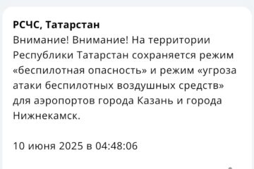 Небо открыто — оба аэропорта Татарстана вновь обслуживают рейсы 07:01 | 04-11-2025 Общество Сняты ограничения на прием и выпуск судов в аэропортах Казани и Нижнекамске. Об этом сообщает официальный представитель Росавиации. Воздушные гавани были закрыты чуть больше двух часов из-за введенного в республике режима беспилотной опасности. Представители обоих аэропортов совместно с авиакомпаниями предпринимают... Ночная атака и закрытое небо — первый выходной в Татарстане начался с беспилотной опасности 07:26 | 02-11-2025 Происшествия Режим беспилотной опасности объявлен в Татарстане в первый выходной день. Сообщение от МЧС России поступило около часа ночи. Почти сразу появились проблемы с мобильным интернетом. В некоторых частях республики сеть полностью отсутствовала. В 03:42 представитель Росавиации сообщил, что на прием... Из-за угрозы атаки БПЛА временно закрыт аэропорт Казани 07:18 | 04-07-2025 Происшествия Воздушная гавань Казань временно не выпускает и не принимает самолеты. Такая информация появилась в официальном телеграм-канале Росавиации. Как сообщали пресс-секретарь Международного аэропорта «Казань» Адель Гатауллин, с пассажирами задержанных рейсов в аэропорту проводится работа представителями авиакомпаний и работниками аэропорта. Пассажирам с... Внимание, дроны: над территорией Татарстана объявлена беспилотная опасность 06:22 | 10-06-2025 Происшествия С трех утра над территорией Татарстана была объявлена беспилотная опасность и режим атаки БПЛА. Соответствующее сообщение пришло от МЧС России. Особы режим продлевали уже дважды. Два основным аэропорта республики закрыты на приме и выпуск судов. Небо над Татарстаном закрыто: аэропорты Казани и Нижнекамска не выпускают и не принимают рейсы 06:06 | 10-06-2025 Происшествия Сегодня около трех часов ночи временные ограничения на прием и выпуск воздушных судов ввели в Международном аэропорту «Казань», сообщает Росавиация. Спустя полтора часа небо закрыли и над Нижнекамском. Временные ограничения введены для обеспечения безопасности полетов. Аэропорт Нижнекамска для безопасности закрыли на прием и выпуск самолетов 23:11 | 25-05-2025 Происшествия Сегодня с 22:05 на прием и выпуск пассажирских судов закрыт аэропорт «Бегишево» (Нижнекамск). Об этом сообщает Росавиация. Временные ограничения в воздушной гавани введены для обеспечения безопасности полетов. Напомним, что сегодня ВСУ атаковали беспилотниками Москву и Подмосковье. Были сбиты более 20... Вслед за Нижнекамском закрыли небо над Бугульмой 08:50 | 09-05-2025 Происшествия Вслед за аэропортом в Нижнекамске, небо закрыли и над Бугульмой. Об этом сообщает Росавиация. Ограничения на прием и выпуск воздушных судов введены с 8:00. Это сделано для обеспечения безопасности полетов. Напомним, что утром закрыли на прием и выпуск судов Нижнекамск.... Десятки рейсов задерживаются на прилет и отправку из-за закрытого неба над Татарстаном 06:11 | 06-05-2025 Происшествия Около половины шестого утра были введены ограничения на прием и выпуск самолетов в двух аэропортах Татарстана. Это было сделано для обеспечения безопасности полетов. В связи с закрытом небом в Казани на прилет и вылет задерживаются сразу десяток рейсов. Среднее ожидание... Второй день подряд в целях безопасности закрывают аэропорт Казани 05:38 | 24-04-2025 Происшествия Сегодня с 04:44 в целях обеспечения безопасности пол